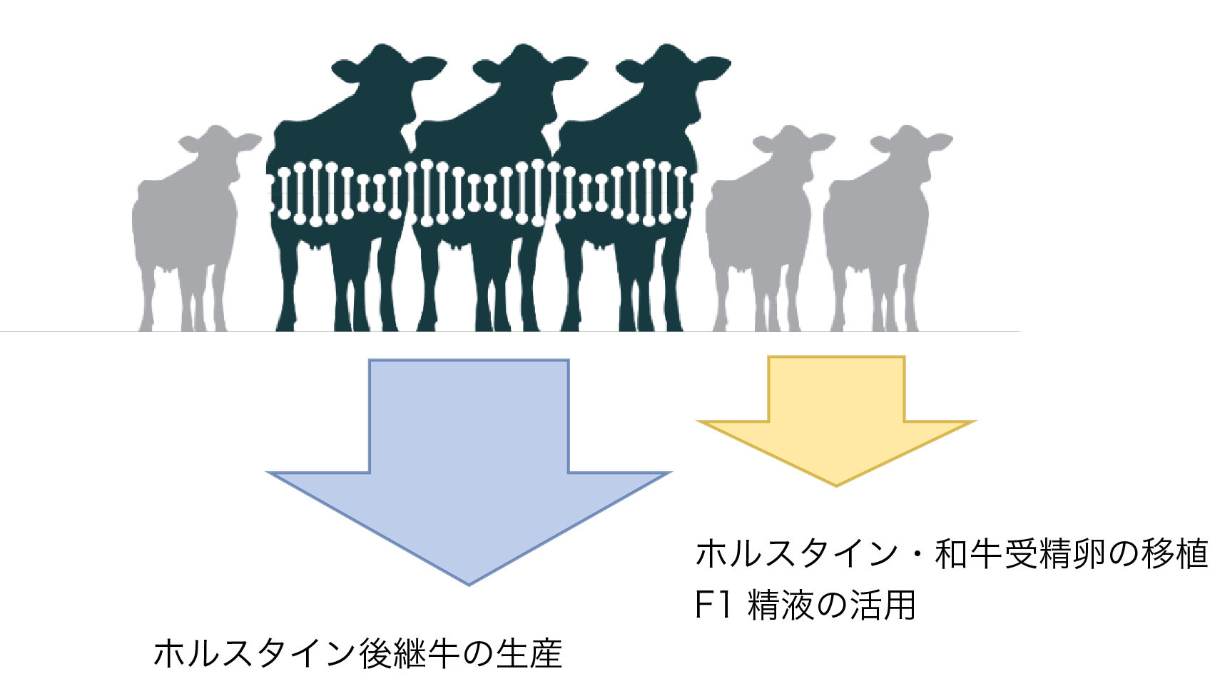 ゲノム検査結果、もしくは血統情報から予測したペアレントアベレージの高い雌牛から後継牛を生産し、