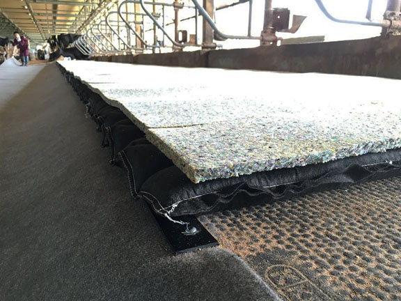 牛床を常に同じ柔らかい状態を維持します。マットレスはチューブ状の独立構造で、その中にゴムチップがたっぷりはいっています。さらにその上を堅牢なトップカバーで覆います。無機物の製品のみで構成されておりますので、バクテリアの繁殖の原因になりません。
