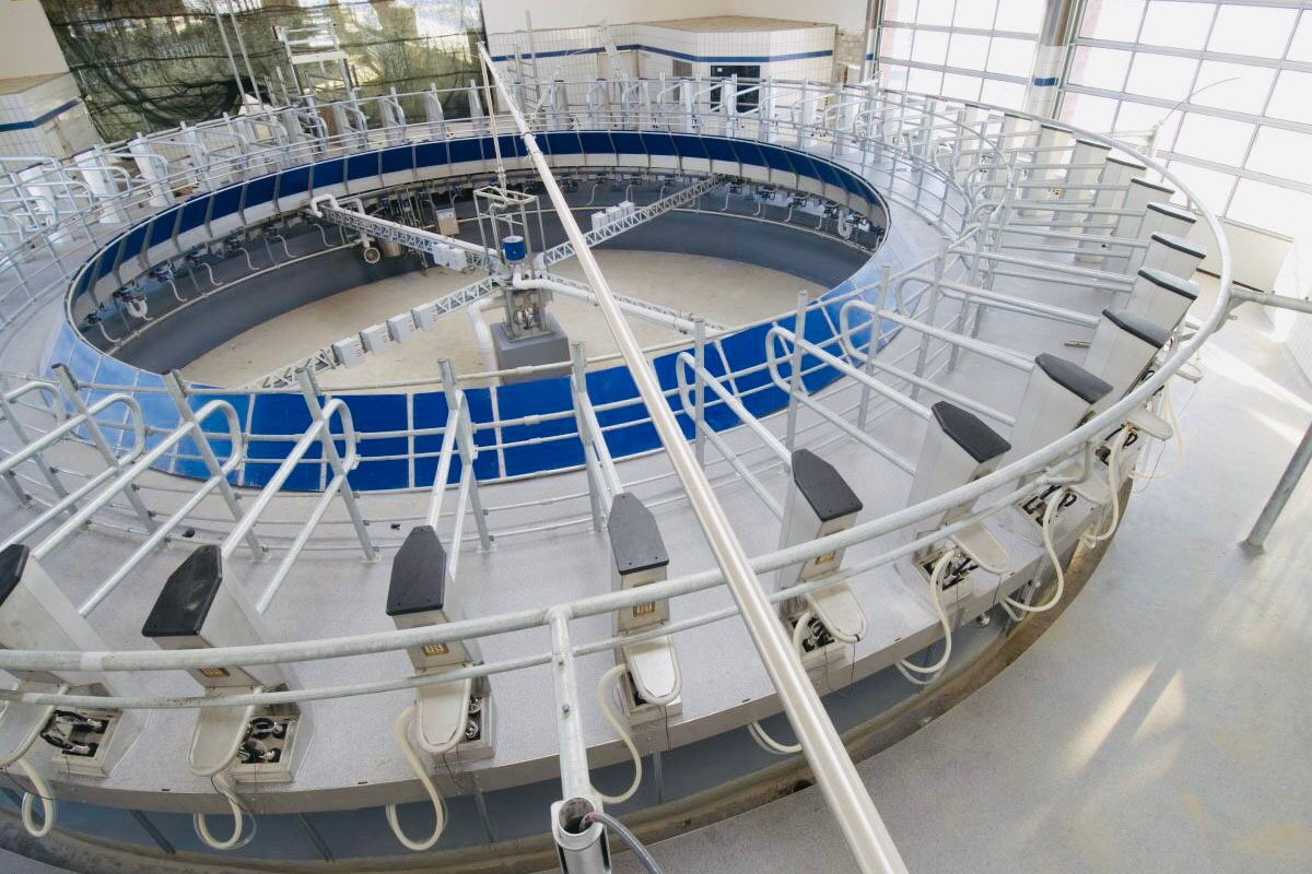 北米及び日本のギガファーム(24時間搾乳)で実証された抜群の耐久性と快適性を誇る、BouMatic最高級モデルのロータリーパーラーです